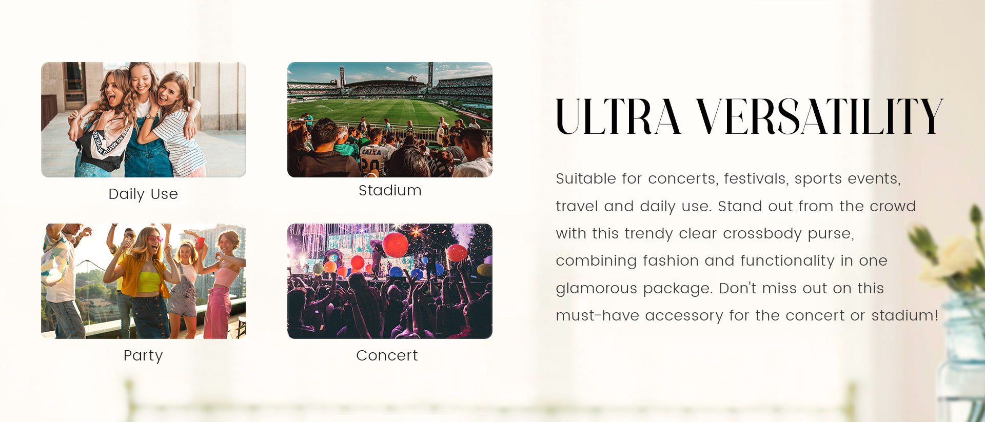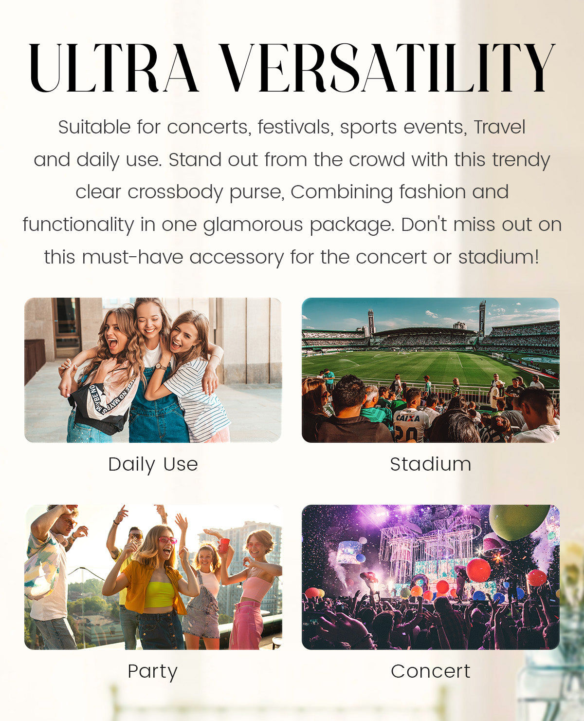 A new year, a new outlook. Explore classic styles in new territories and start 2024 with a fresh perspective. We have developed Clear Stadium Bag. This clear stadium bag is compliant with the clear bag policy. Taking it to get through security quickly and easily access sporting events, concerts, festivals, and any outdoor activities.